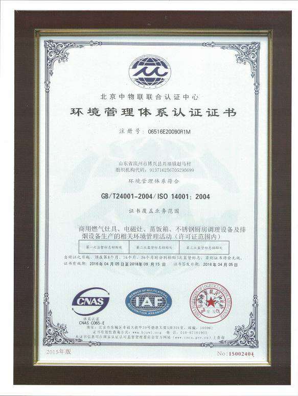 环境管理体系认证证书